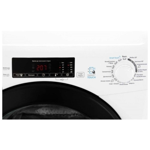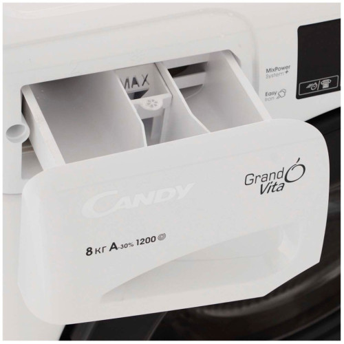 Стиральная машина Candy SGV44 128TWB3-07 из линейки Grand O’Vita имеет фронтальную загрузку и рассчитана на 8 кг сухого белья. Эта отдельно стоящая машина глубиной всего 44 см одновременно компактна и вместительна: занимает мало места и выстирает вещи на всю семью. Она хорошо экономит воду и электроэнергию, потребляя всего 1,04 кВт/ч и 49 л на цикл стирки. Сенсорный ввод команд Smart Touch для этой модели доступен благодаря встроенному модулю NFC. Пользователь сможет управлять основными функциями машины через приложение, разработанное фирмой Candy. В приложении много бонусных опций, в частности, оповещение о неисправностях, слежение за таймером отсрочки старта, автоматическая очистка барабана AutoClean, изменение заданных параметров стирки.