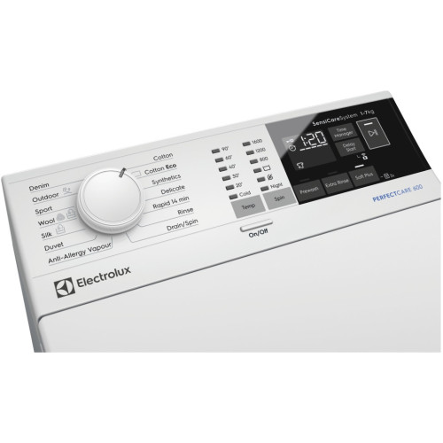 Стиральная машина Electrolux EW6T4R061 – техника, без которой уже сложно обойтись в доме. Она значительно облегчает и ускоряет процесс стирки больших объемов белья. Разновидность предлагаемой модели – автомат. Стиральная машина Electrolux EW6T4R061 принадлежит к классу энергопотребления A+++. За счет этого сокращаются расходы электрической энергии при ее использовании. Габариты стиральной машины – 40x60x89 см. Она весьма компактная, для ее установки в помещении не надо выделять много места. Загрузка у стиральной машины – вертикальная. Не надо оставлять много пространства перед ней для свободного открытия дверцы, что станет преимуществом для ряда покупателей. Управление стиральной машиной происходит с использованием поворотного механизма и сенсорных элементов. Максимальная загрузка белья – 6 кг. Этого хватит для различных не очень больших семей. Производитель предусмотрел 14 программ стирки. Вы выберете именно ту, которая подходит для загруженных вещей. Предусмотрена блокировка от детей. Они точно не смогут получить доступ к стиральной машине. Для повышения надежности техники создана защита от протечек.
