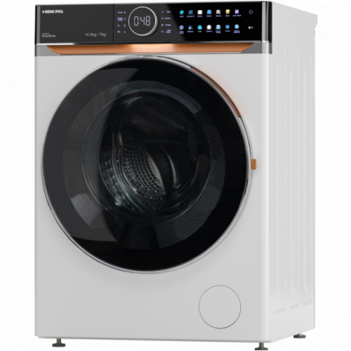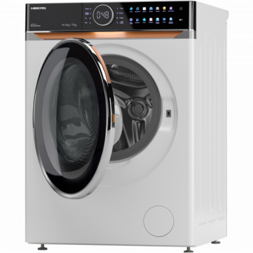 тиральная машина с сушкой HIBERG i-DDQ10 - 10714 W оснащена инверторным мотором и системой прямого привода . Модель отстирывает до 10,5 кг сухого белья за цикл стирки. Максимальная загрузка белья при сушке составляет - 7 кг. Высший класс энергоэффективности А +++ способствует низкому потреблению воды и электричества. Машинка потребляет до 64 л воды за цикл стирки с максимальной скоростью отжима 1400 оборотов в минуту. Инверторный мотор и прямой привод обеспечивают практически бесшумную работу двигателя до 46 дБ и повышенную устойчивость конструкции с минимальными затратами ресурсов. Двигатель стиральной машины не нуждается в техническом обслуживании и периодической смазке. Бонусом от производителя является 10 лет гарантии на инверторный мотор. Панель управления: Сенсорное управление с механическим диском позволяет выбрать необходимую программу с предустановленными настройками, отрегулировать температуру и скорость отжима. На цветном LED-дисплее световой индикацией отражается вся информация по выбранной программе и типу стирки, таймер, температура воды, скорость отжима, количество циклов полоскания, время отложенного старта и код ошибки. Инновационная особенность – сушка прямо в стиральной машине позволит сэкономить время и силы пользователя. С программой сушки больше не придется развешивать белье на специальных устройствах, которые занимают много места. После сушки в стиральной машине одежда приобретает легкий разглаженный вид, что позволяет, не прибегая к глажке, отправить постиранные вещи сразу в шкаф. В стиральной машине используется технология 7 алгоритмов вращения барабана для бережной и эффективной стирки. Благодаря этой технологии машина сама выбирает тип вращения и задает оптимальный режим в зависимости от ткани и объема белья. Программы стирки: Стиральная машина имеет 14 автоматических программ. В ней можно стирать детскую одежду, нижнее белье, шерстяные вещи, а также одеяла и пуховики. Интеллектуальная программа стирки «Smart» позволяет отстирывать даже самые стойкие загрязнения, определяя вес белья и сочетая различное время и температуру. Дополнительная полезная функция «Стерилизация ультрафиолетом» активируется в процессе стирки: генерирует УФ – излучение и предотвращает размножение бактерий, аллергенов и вирусов. Технология идеальна для дезинфекции белья и устранения неприятных запахов. Функция «Воздушная стирка» работает в режиме сушки без воды. Она позволяет бережно удалить пыль и различные запахи, защитить цвет, сделать одежду гладкой, пушистой и придать ей прежний лоск. Возможность отложить старт на определенный период от 1 до 24 часов, позволяет запустить машинку в более удобное время. В стиральной машине есть режим быстрой стирки 15 минут для слабозагрязненных вещей, предварительная стирка для сильнозагрязненных, суперполоскание - тщательное смывание остатков пены с внутренней стороны дверцы струями воды, а также функции - дополнительное полоскание и дозагрузка белья. Внутреннее строение: Функция автодозировки i-Dos – интеллектуальная технология дозирования автоматически измеряет точное количество моющего средства, необходимого для цикла стирки. Манжета люка имеет нано – антибактериальное покрытие, которое исключает появление неприятных запахов, предотвращает размножение бактерий и образован