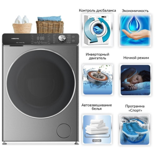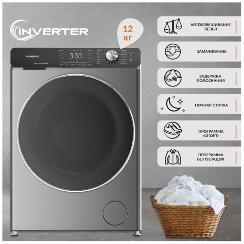 HIBERG считает, что о качестве стирки должна заботиться техника, а не ее хозяин. Стиральные машины HIBERG максимально надежны, функциональны, оснащены множеством программ и передовыми технологическими достижениями. Специальные алгоритмы потребления воды и электроэнергии обеспечивают экономию семейного бюджета без ущерба для качества стирки. Специальные алгоритмы потребления воды (до 65 литров на цикл стирки) и электроэнергии (класс А+++) обеспечивают экономию семейного бюджета без ущерба для качества стирки. Специальный датчик автоматически регулирует расход воды в зависимости от загрузки белья. Экономьте на потреблении воды, электроэнергии. Инверторные стиральные машины HIBERG стирают так качественно и бережно, что ваши вещи всегда будут как новые! Инверторные технологии это преимущество в тишине стирки, долговечности мотора и ресурсосбережении. Полноразмерная стиральная машина HIBERG (глубиной 68,5 см) с фронтальным типом загрузки рассчитана, что Вы легко отстираете за одну загрузку до 12 кг сухого белья. Это впечатляющий показатель для домашних стиральных машин. Большой выбор программ. 14 автоматических программ стирки (с предустановленными настройками) позволят выбирать наиболее оптимальный режим для каждого вида тканей. Доступные программы стрики: Программа «Детские вещи» разработана специально для эффективной стирки детских вещей, она отлично справляется с засохшими пятнами и удаляет аллергены с детских вещей. Стиральная машина дополнительно добавляет полоскание и повышает температуру стирки. Программа «Хлопок» температура воды составляет 90 - 95 градусов, отжим осуществляется на высоких оборотах, а также, предполагает стирку постельного белья или одежды из хлопка с сильными загрязнениями. Процесс стирки белья происходит обычно не быстро, а при отжиме используется наибольшее количество оборотов, доступное стиральной машине, цикл около 65 минут. Режим «Синтетика» предназначен для обработки синтетических тканей. Нагрев воды достигает 60 градусов. Режим длительный, около 67 минут, отжим осуществляется на максимальных оборотах. Смешанные / микс предназначен для стирки различного типа белья, за исключением одежды требующей особого ухода, время программы 76 минут. Спортивная одежда (подходит для людей, часто занимающихся спортом или предпочитающих спортивный стиль в одежде) в течение 44 минут Пуховое одеяло – данная программа позволит постирать крупные вещи с различным наполнителем при температуре 40? С (можно выставить 20?). В данном режиме нельзя стирать только деликатные вещи. Шерсть применяется для легких и мягких изделий из шерсти. Благодаря пониженной скорости вращения барабана шерстяные изделия не комкаются и не утрачивают первоначальный вид. Машинка, на этом режиме, очень бережно стирает на низкой температуре. Отжим не используется. Режим выполняется при 40 градусах (можно выставить 20?), с легким покачиванием барабана. Подходит для с пометкой на бирке «Ручная ст