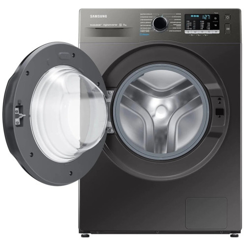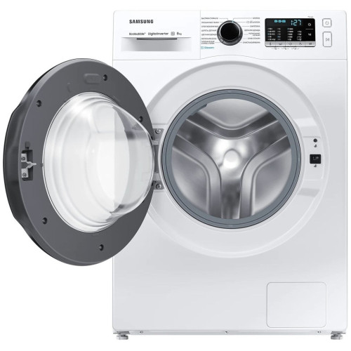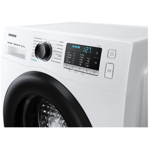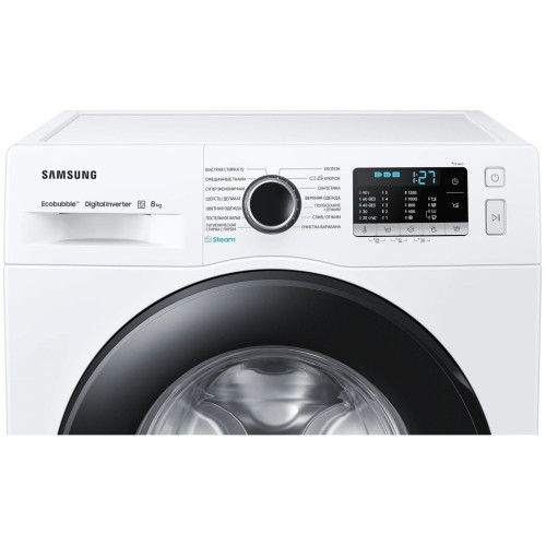 Стиральная машина Samsung WW80AAS22A с технологией EcoBubble вмещает до 8 кг. Наслаждайтесь эффективной стиркой даже при низких температурах. Ecobubble превращает моющее средство в пузырьки, благодаря чему оно быстро проникает в ткань и улучшает удаление загрязнений на 24%. Он также снижает потребление энергии до 70% и защищает цвет и текстуру одежды, улучшая уход за тканью на 45,5%. Защитите свой пол и дом от случайных повреждений с помощью AquaProtect. Расположенный под стиральной машиной, он обнаруживает небольшие следы воды. При обнаружении утечки цикл немедленно останавливается, вода сливается и отображается сообщение об ошибке. Таким образом вы обезопасите себя и избежите потенциально дорогостоящих повреждений. Модель оснащена инверторным мотором со скоростью до 1200 об/мин, который отличается низким уровнем шума — до 57 дБ. При отжиме этот показатель достигает 75 дБ. За один цикл расходуется не больше 48 л воды и до 1,07 кВт*ч. На лицевой панели расположены кнопочный блок и поворотный переключатель. Они позволяют выбрать оптимальные настройки — доступно несколько режимов для разных видов тканей, гигиеническая обработка паром, дополнительное полоскание, мини-программа продолжительностью 15 минут, очистка барабана. Параметры отображаются на встроенном дисплее. Для безопасности предусмотрены функции защиты от детей и от последствий протечек.