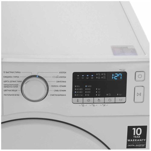 По-настоящему глубокая очистка с помощью пара. Стирка паром улучшает качество чистки одежды без предварительной обработки. Пар подается снизу в барабан благодаря чему одежда полностью пропитывается. Пар удаляет частицы загрязнений и 99.9% бактерий и деактивирует аллергены* Вы оцените сниженное энергопотребление, меньший уровень рабочего шума и большой рабочий ресурс. В цифровом инверторном моторе используются мощные магниты, отсутствуют традиционные щетки, благодаря чему повышается эффективность стирки и снижается энергопотребление по сравнению с универсальным мотором. Этот электромотор отличается исключительно высокой долговечностью*, поэтому гарантийный срок его составляет 10 лет.