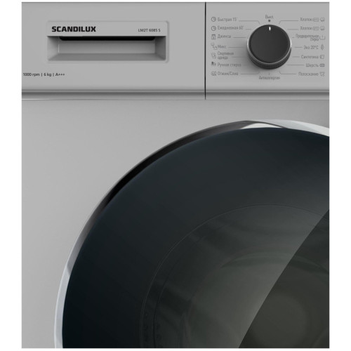 Стиральная машина Scandilux LM2T 6085 S с загрузкой 6 кг представлена в оригинальном дизайне серебристого цвета с тонированным люком. Представленная модель с фронтальной загрузкой, что несомненно является привычным вариантом. Она оснащена широко открывающейся дверцей диаметром 47 см, благодаря чему облегчается загрузка белья. Корпус прибора изготовлен из прочной и долговечной нержавеющей стали, а бак из полипропилена, стойкого к агрессивным воздействиям.
