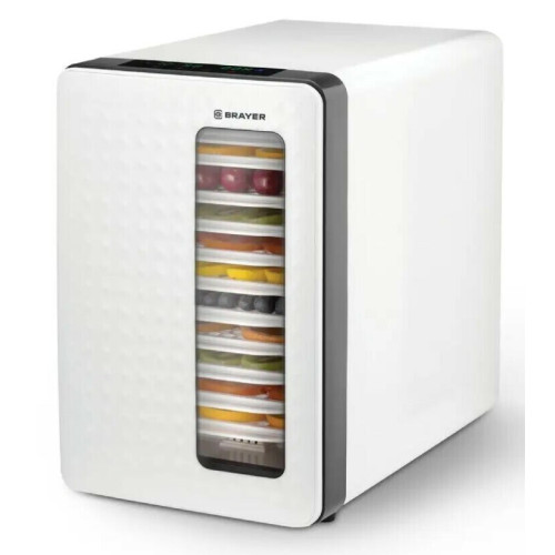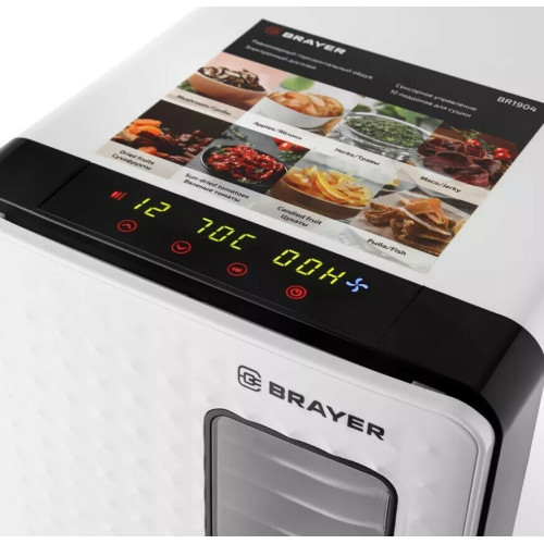 Электрическая сушилка BR1904 - это незаменимый помощник для любителей здорового питания! Эта сушилка позволит вам получать свежие и питательные продукты в любое время года, благодаря 10 качественным поддонам из термостойкого материала и функции вертикальной циркуляции воздуха. Сушилка оснащена мощным нагревающим элементом, который равномерно распределяет тепло и сохраняет все полезные свойства продуктов. Корпус изготовлен из ABS - пластика и имеет прозрачную конструкцию, что позволяет легко контролировать процесс сушки. Сенсорное управление и цифровой дисплей делают использование сушилки еще более удобным. Регулируйте температуру в диапазоне от 40 до 70 градусов по Цельсию, а время сушки можно установить до 48 часов. Функция защиты от перегрева обеспечивает безопасность использования. BR1904 идеально подходит для тех, кто заботится о своем здоровье, а благодаря своей простоте, удобству и отсутствию потери вкуса и питательных свойств, эта сушилка станет незаменимым помощником на вашей кухне.