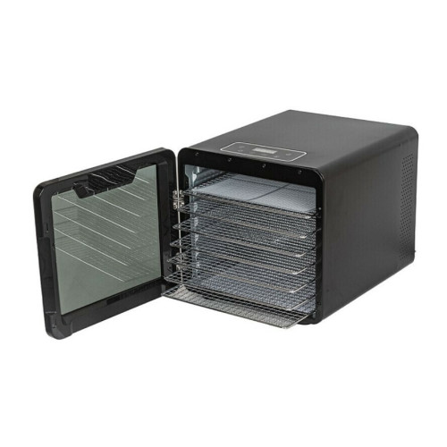 Большая сушилка для овощей и фруктов JVC JK-FD801 – уникальный прибор для домашнего использования. Сушилка поставляется с 7 поддонами из хромированной стали, сеткой для мелких продуктов и противнем для приготовления пастилы. С помощью этой сушилки вы сможете без особых усилий готовить в домашних условиях полезные десерты и специи, вяленое мясо, джерки, закуски, фруктовую пастилу и смокву, лакомства для животных, сухарики, травы, цветы, фрукты, овощи, гранолу.