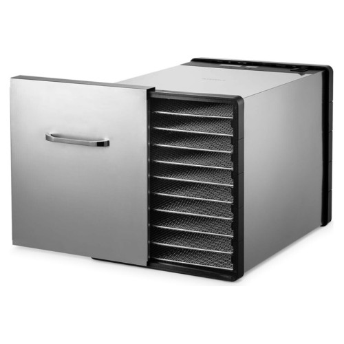 Сушилка для овощей и фруктов KITFORT КТ-1924 поможет насушить на всю зиму овощи, фрукты, ягоды, грибы, корнеплоды, зелень, хлеб, а также мясо, птицу и рыбу. На сушилке можно установить температуру сушки в диапазоне 30–70 °С с шагом 1 °С. Таймер регулируется до 40 часов 59 мин работы с шагом 1 ч. На панели указаны рекомендации по сушке разных продуктов. В сушилке установлен мощный нагревательный элемент и вентилятор с лопастями большого диаметра. Это обеспечивает равномерный горизонтальный обдув всех 10 поддонов. Таким образом запахи продуктов с разных поддонов не смешиваются. В комплекте с сушилкой идут 10 металлических сетчатых поддонов. Металлическая дверца навешивается на сушилку, поэтому она не будет мешаться при установке и вытаскивании решеток.