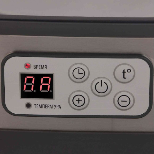Электросушилка c электронным контролем температуры для равномерной сушки трав, зелени, овощей, фруктов, орехов, грибов, приготовления вяленого мяса, птицы, рыбы, а так же возможностью приготовления пастилы, кисломолочных продуктов и расстойки теста. Корпус и поддоны сушилки изготовлены из пищевого термостойкого пластика, устойчивого к высоким температурам, не выделяющего вредных веществ и посторонних запахов, сохраняющего вкус и аромат продуктов натуральными. Модель MT-1877 также укомплектована 3 поддонами для приготовления пастилы. Многоярусная конструкция электросушилки позволяет разместить в небольшом объеме максимум продуктов и добиться их наилучшего распределения для быстрого и равномерного высушивания. Это самый эффективный способ сохранения продуктов, для каждого из которых можно подобрать оптимальный температурный режим от 35 до 70°C и проконтролировать время работы на контрастном LED-дисплее. Цифровое управление позволяет работать с электросушилкой с комфортом и удовольствием. Электронный контроль температуры гарантирует соблюдение условий сушки без Вашего участия, а электронный таймер позволит установить время сушки до 72 часов, по истечении которых сушилка выключится автоматически, полностью избавив от необходимости следить за ее работой. Встроенный вентилятор равномерно нагнетает воздух в пространство сушилки, обеспечивая необходимые условия для эффективного сохранения полезных микроэлементов. Электросушилка – необычайно полезный прибор, поскольку способен на долгое время сохранить питательную ценность многих сезонных продуктов, обеспечив здоровое питание на весь год.