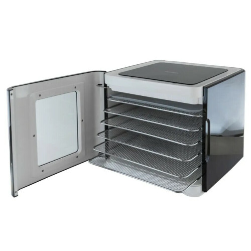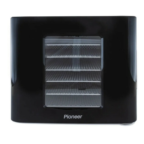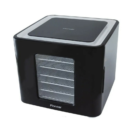 Сушилка Pioneer FD906D оборудована большим мощным вентилятором, что обеспечивает равномерный горизонтальный обдув всех 6 поддонов. Поток воздуха направлен горизонтально, поэтому запахи продуктов с разных поддонов не смешиваются. На сушилке можно установить температуру сушки в диапазоне 35-70 °С. Прибор оснащен таймером до 72 часов.
