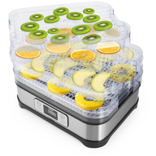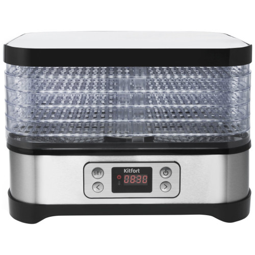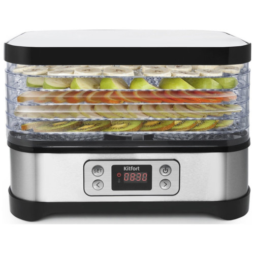 Электрическая сушилка Kitfort KT-1903 предназначена для сушки овощей, фруктов, ягод, грибов, корнеплодов, трав и зелени, мяса и рыбы, хлеба. Поддоны выполнены из прозрачного пластика, что позволяет наблюдать за процессом сушки. Съёмные поддоны могут быть установлены в 2 положениях по высоте в зависимости от размеров высушиваемых продуктов.