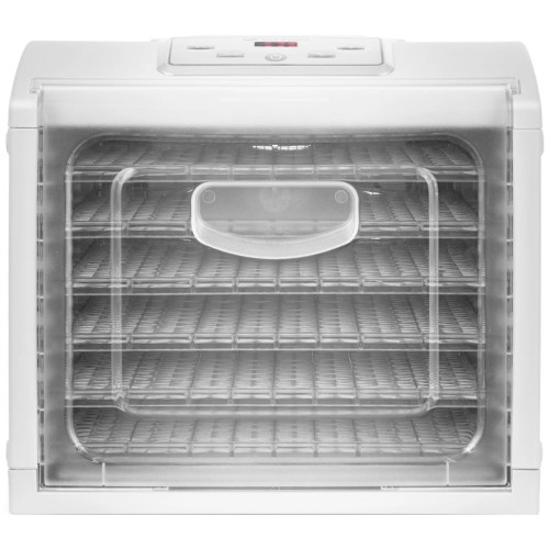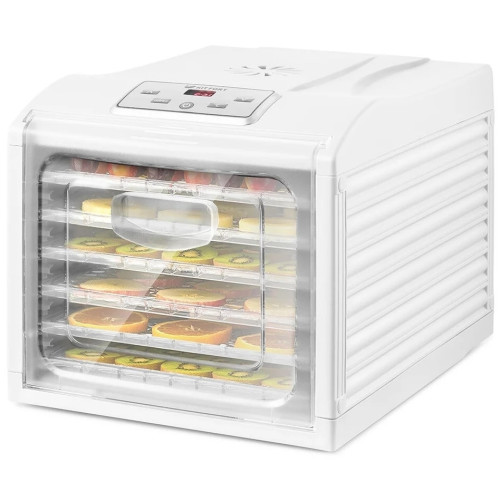 конвективная сушилка; электронное управление; мощность 500 Вт; число поддонов: 6; регулировка температуры сушки; поддоны из прозрачного пластика; дисплей; таймер; защита от перегрева; длина шнура 1.15 м; приготовление пастилы; размеры 34x31.5x45.5 см