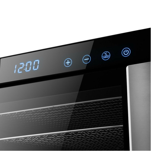 Электрическая сушилка КТ-1911 предназначена для сушки овощей, фруктов, ягод, грибов, корнеплодов, трав и зелени, а также мяса и рыбы, хлеба. С помощью специального поддона для жидкости можно готовить пастилу. Сушилка оборудована большим мощным вентилятором, что обеспечивает равномерный горизонтальный обдув всех поддонов. Поток воздуха направлен горизонтально, так что запахи продуктов с разных поддонов не смешиваются. На сушилке можно установить температуру сушки в диапазоне 35–75 °С с шагом 5 градусов. Сушилка оснащена таймером до 24 часов работы с шагом 30 минут. Прибор имеет строгие формы, минималистичный стильный дизайн и удобные ручки для переноски. Корпус сушилки выполнен из металла, а дверца выполнена из сочетания стекла и металла. Через стекло в дверце можно следить за процессом сушки. Сушилка имеет в комплекте 6 поддонов из нержавеющей стали, 6 поддонов для жидкости и 6 сеток для мелких продуктов.