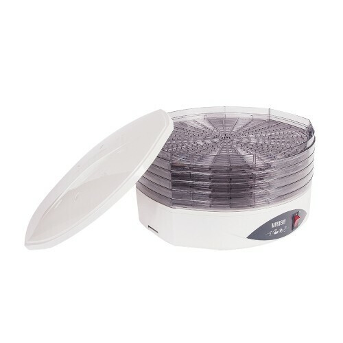 Сушилка для овощей и фруктов Mystery MDH-322 с мощностью 250 Вт отличается простым устройством и эффективностью работы. В нижней части корпуса встроен источник подачи теплого воздуха. Прибор вмещает пять секций для продуктов общей вместительностью 4.8 кг. Время высушивания колеблется от 2 до 24 часов, это зависит от выбранных продуктов. Данная модель хорошо подходит для обработки фруктов, овощей, ягод и трав, грибов, вяления мяса, рыбы, сохраняя при этом все их полезные качества. Дополнительный плюс сушилки для фруктов и овощей Mystery MDH-322 – небольшой вес и достаточно компактные размеры, поэтому на кухне она займет совсем немного места. Выпуклая форма крышки не сплющивает продукты, лежащие на верхнем ярусе. Регулировка высоты поддонов еще больше оптимизирует процесс приготовления. Необходимая температура регулируется в пределах диапазона 40-70°С. Использование Mystery MDH-322 станет отличной альтернативой домашнему консервированию, позволяя экономить массу времени и сил.