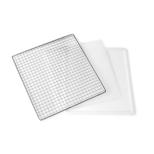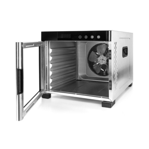 Корпус из нержавеющей стали с двойными стенками Сенсорная панель управления Светодиодный дисплей Таймер на 24-часа Автоматическое отключение Очень тихая работа Равномерное распределение температуры на всех уровнях Выбор температуры от 35 ° C до 75 ° C Электронный контроль температуры Защита от перегрева Удлинённый кабель питания 1,9 м Место для хранения кабеля Практичные боковые ручки Большая площадь сушки 0,6 м² Решетки для сушки из нержавеющей стали 6 шт. (30 х 31,5 см) 1 сетка и 1 поддон для сушки пластиковые без BPA