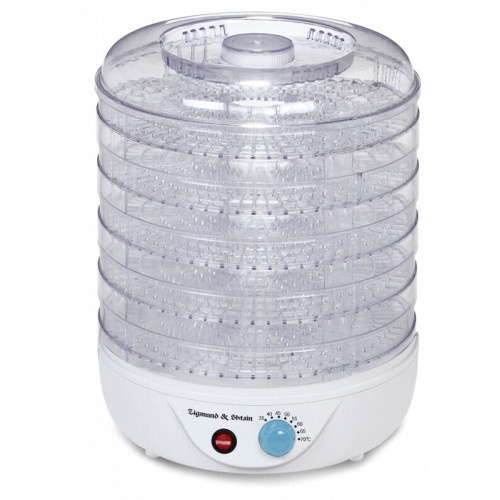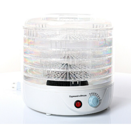 ZFD-400 от Zigmund & Shtain — это бытовая сушилка с пятью поддонами. С ее помощью заготавливают овощи, фрукты, грибы, травы и ягоды, готовят натуральную пастилу, зефир, мармелад, цукаты. Электрический дегидратор обеспечивает сушку в щадящем режиме при температуре до 70 градусов Цельсия, чтобы в сырье сохранились все полезные компоненты. Сушилка для овощей Zigmund & Shtain ZFD-400 имеет простой функционал: • прозрачные съемные секции — контролировать готовность продуктов можно, не открывая конструкцию; • механическая кнопка включения и регулятор температуры — с простой настройкой справится любой человек; • защита от короткого замыкания и автоматическое отключение при перегреве; • сетчатый лист для пюреобразной массы в комплекте.