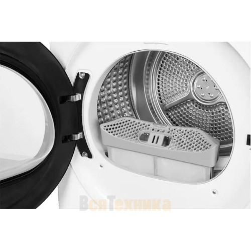 Собирает мелкие частицы пыли, ворс, пух и пыльцу растений. Фильтр удобно чистить — для этого достаньте его из передней части барабана и промойте проточной водой.
