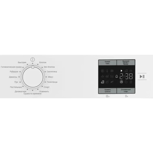 Indesit IAS3725 Тип сушки Конденсационная с тепловым насосом Отвод конденсата в дренаж Есть Сбор конденсата в резервуар Есть Уровень шума при сушке 64 дБ Установка на стиральную машину Есть Класс сушки A Загрузка Тип загрузки Фронтальная Максимальная загрузка 7 кг Перенавешиваемая дверца Есть Функции Установка времени завершения сушки Есть Сушка по таймеру Есть Защита от сминания Есть Звуковой сигнал Есть Программы Количество программ 15 Бережная сушка Есть Ускоренная сушка Есть Освежить паром Есть Шерсть Есть Джинсы Есть Спортивная одежда Есть Шелк Есть Легкая глажка Есть Повседневная Есть Пуховики Есть Барабан Объем барабана 92.5 л Материал барабана Нержавеющая сталь Управление и индикация Тип управления Электронный Дисплей Есть Цвет символов дисплея Белый Индикация хода программы Есть Индикация времени до конца программы Есть Индикация заполнения резервуара Есть Безопасность Защита от детей Есть Ворсовый фильтр Есть Энергопотребление Класс энергопотребления A Энергопотребление за цикл 1.8 кВт*ч Максимальная потребляемая мощность 900 Вт Габариты и вес Высота 84.6 см Ширина 59.8 см Глубина 54.6 см Глубина с открытым люком 100.3 см Вес 39.5 кг
