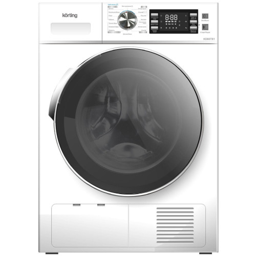 Съемный резервуар для слива конденсата Сушильный барабан оснащён специальным резервуаром, где остается конденсат после сушки белья. Вы можете поставить и пользоваться прибором в помещениях без оборудования для слива. Функция «Отложенный старт» В некоторых случаях необходимо отложить включение прибора на несколько часов, чтобы, например, сэкономить на тарифах электроэнергии или завершить процесс к определенному времени. Отложенный старт позволяет запрограммировать прибор на автоматическое включение в нужное время. Режим «Турбо» При использовании турбо режима Вы можете сократить продолжительность программы, когда необходимо завершить процесс быстрее. При этом машина не исключает полностью какие-либо этапы программы, а понемногу сокращает время каждого из циклов, что не сказывается на ожидаемом результате. Функция «Защита детей» Чтобы любимое чадо не вмешивалось в процесс работы программы, есть возможность блокировки управления. При этой функции недоступны для нажатия любые кнопки кроме выключения машины. Функция «Защита от сминания» Не всегда получается достать бельё сразу после сушки из-за различных забот. Чтобы высушенное белье не сминалось в сушильном барабане, включите функцию защиты от сминания, и машина будет периодически разрыхлять белье до тех пор, пока Вы его не заберете. Режим «Моя программа» Вы можете создать свою программу стирки с необходимой температурой, скоростью оборотов при отжиме, и дополнительными функциями. Сохранённая Вами программа всегда будет под рукой на самом верхнем положении регулятора.