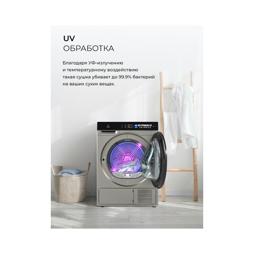 - Дополнительные программы: Smart/UV обработка/Без складок/Верхняя одежда/Нижнее бельё/Освежение/Сушка на полке/Сушка по времени