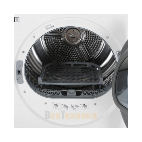 - Вместительный барабан на 9 кг: Позволяет за один цикл высушить большое количество белья, например, постельное белье для всей семьи или объемные вещи. Экономит ваше время и ресурсы.