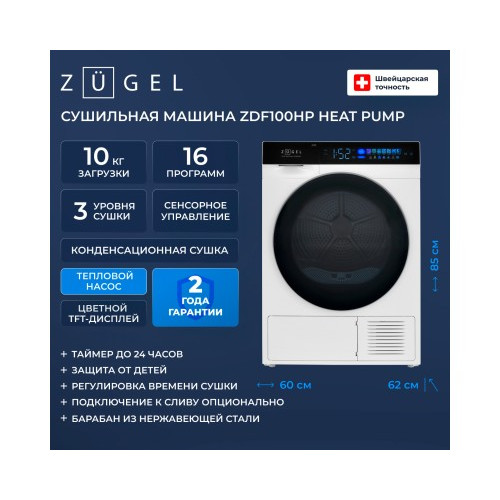 Сушильная машина ZUGEL ZDF100HP Heat Pump