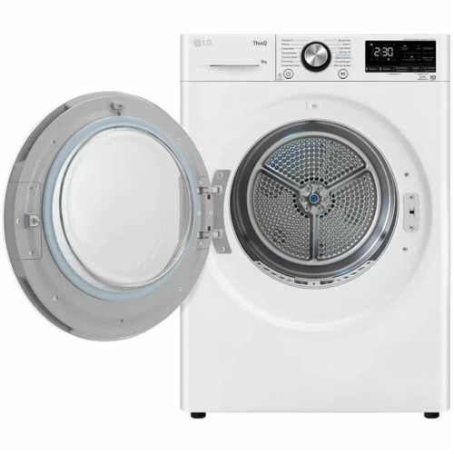Основные характеристики - Установка: отдельностоящая - Тип загрузки: фронтальная - Максимальная загрузка белья: 9 кг - Вид сушки: конденсационный с тепловым насосом - Тип двигателя: инверторный - Уровень шума: 62 дБ Управление - Тип управления: электромеханическое - Переключатели: поворотные, сенсорные - Размещение панели управления: под наклоном - Тип сушки: по таймеру, по степени влажности - Количество программ: 14 - Программы: хлопок, смешанная, повседневная, пуховые вещи, полотенца, быстро 30, гипоаллергенная, деликатная, шерсть, спортивная, сушка на решётке, холодный воздух, тёплый воздух, моя программа - Дополнительные программы: сушка EcoHybrid - Разглаживание складок: да - Поддержка Wi-Fi: да - Управление через смартфон: да - Поддержка мобильного приложения: LG SmartThinQ Дисплей - Цифровой дисплей: да - Тип дисплея: LED, монохромный Таймер - Таймер отсрочки: да - Максимальное время отсрочки: 19 ч - Звуковой таймер: да Индикация - Звуковой сигнал завершения программы: да - Отключение звукового сигнала: да - Индикация неисправностей: да - Индикация времени до конца программы: да - Индикация загрязнения фильтра: да - Цвет индикации: белый Технологии - Технология Heat Pump: да - Датчик температуры: да - Датчик влажности: да Защита и безопасность - Защита от детей: да - Ворсовый фильтр: да - Самодиагностика неисправностей: да - Мобильная диагностика: да Энергопотребление - Класс энергопотребления: A+++ - Энергопотребление за цикл: 1.66 кВт/ч - Напряжение: 220-240 В Особенности конструкции - Объем барабана: 122 л - Подсветка барабана: да - Форма дверцы: круглая - Направление открывания дверцы: вправо - Перенавешиваемая дверца: да - Самоочищающийся конденсатор: да - Функция очистки барабана: да Дополнительные функции - Контроль влажности: да - Возможность подключения к сливу: да Цвет и материал - Цвет дверцы люка: хром, чёрный - Материал дверцы люка: закалённое стекло - Цвет: белый Комплектация - Инструкция: да Размеры и вес - Высота: 85 см - Ширина: 60 см - Глубина: 66 см - Вес: 56 кг