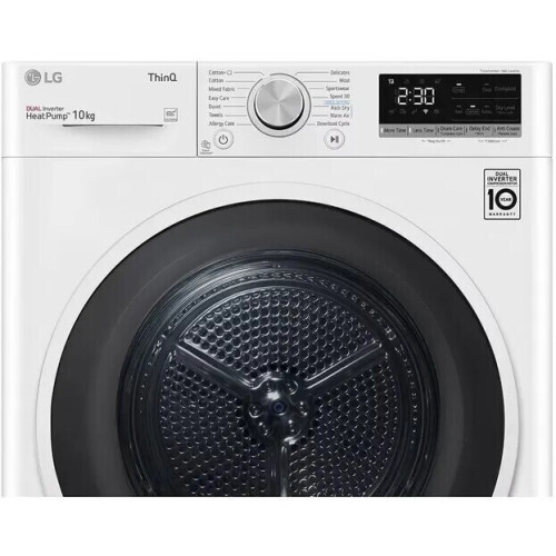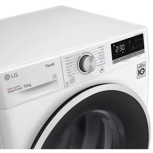 Сушильная машина LG поддерживает конденсационную сушку и предусматривает одновременную загрузку 10 кг белья. 14 программ рассчитаны на бережную сушку разных типов тканей. Каждый режим предполагает набор оптимальных параметров, с которыми сушка будет наиболее эффективной для хлопка, деликатных и других видов тканей. Машина обладает экономичностью в плане энергопотребления, поддерживая энергоэффективность уровня А+++. Такой рейтинг энергоэффективности обусловлен применением хладагента и рециркуляции горячих потоков воздуха для нагревания воздуха внутри камеры.