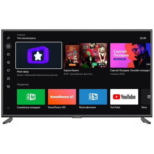 Телевизор Hyundai H-LED50EU1311 воспроизводит яркое, чёткое, реалистичное изображение и передаёт мощный и в то же время естественный звук. Вы получите максимум удовольствия от просмотра фильмов и развлекательных передач. Благодаря лаконичному дизайну он хорошо вписывается в современный интерьер. Smart TV Важная особенность этой модели – работа под управлением операционной системы Android. Подключайтесь к интернету и ищите интересный контент на YouTube, в онлайн-кинотеатрах и на других сайтах. БОЛЬШЕ ВОЗМОЖНОСТЕЙ Превратите телевизор в полноценный мультимедийный центр. Для этого предусмотрены разъёмы HDMI и USB, к которым подсоединяются флешки, AV-ресивер, портативные жёсткие диски и другие устройства и носители данных.
