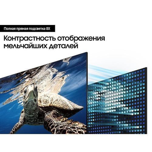 Невероятное качество изображения с объемным звуком. Мощный процессор Samsung Quantum 4K оптимизирует качество изображения, обеспечивая наилучшие условия просмотра и улучшает визуальные характеристики контента. Полная прямая подсветка QLED ТВ автоматически регулируется в зависимости от изображения на экране. Так QLED обеспечивает более глубокие черные тона и оптимальный цветовой контраст в каждой сцене. Технология квантовых точек обеспечивает наилучшее качество изображения. Благодаря 100% объему цвета, технология Квантовых точек преобразует свет в потрясающую цветовую палитру, причем качество цветопередачи при этом остается стабильным при любом уровне яркости. С технологией Object Tracking Sound звук перемещается по экрану, следуя за объектом в каждой сцене. А встроенные дополнительные динамики создают по-настоящему иммерсивное трехмерное звучание, погружая вас в эпицентр событий.