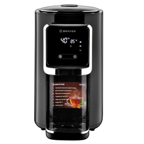 Мощность 1200 Вт. Максимальный объем 5 л. Подача воды с помощью автоматической помпы. Поддержание температуры воды для разных напитков. Функция быстрого охлаждения. Функция повторного кипячения. Режим длительного кипячения. LED-дисплей с подсветкой.
