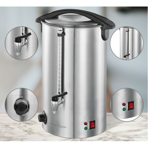 Термопот Profi Cook PC-HGA 1196 не даст вам замерзнуть в холодную погоду, он разогреет и будет поддерживать температуру вашего напитка такого как кофе или чай, также можно разогревать супы. Обьем чаши 7 литров, этого вполне хватит на всю семью или небольшую компанию. В корпусе из высококачественной нержавеющей стали и мощности 1500 Вт термопот быстро нагревается. Кроме того, устройство имеет бесступенчатую электронную регулировку температуры от 30 ° C до 100 ° C. Крышка имееттермоизолированную ручку с предохранителем из нержавеющей стали. Зеленая лампа на корпусе сообщит о фазе нагрева, а индикатор уровня проинформирует вас о содержимом, не открывая крышку. Термопот Profi Cook PC-HGA 1196 незаменимый помощник на природе, даче и в дороге.