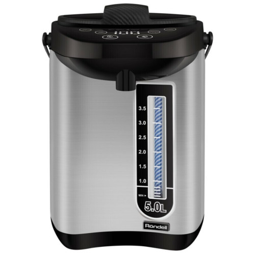 Термопот RDE-1050 с максимальной мощностью 890 Вт — высокотехнологичный кухонный прибор, способный не просто вскипятить 5 л воды, но и сохранить ее температуру на протяжении длительного времени.Устройство оснащено LED дисплеем с сенсорной панелью. Хотите сохранить воду в теплом или горячем виде? Выберите один из семи режимов: 40°С/50°С/60°С/70°С/80°С/90°С/100°С и активируйте его. Автоматические температурные режимы идеально подойдут не только для разнообразных видов чая, но и для приготовления детского питания. Наливать воду из термопота можно удерживая соответствующую иконку на панели управления или нажимая чашкой на специальный клапан. Благодаря большой шкале уровня воды вы всегда будете знать, когда необходимо ее добавить в емкость прибора. Но даже в случае, если вы забудете это сделать, установленная в устройстве защита от перегрева, автоматически его выключит.В термопоте предусмотрено два режима работы, связанные с типом воды: для водопроводной и для питьевой (бутилированная, фильтрованная). В первом случае прибор сначала обязательно вскипятит ее, а затем охладит до выбранной вами температуры, которую и будет поддерживать. Во-втором — сразу нагреет до желаемого уровня.Одно из главных достоинств устройства — Эко-режим: дисплей прибора снижает свою яркость до минимального уровня и автоматически выключается, если вы гасите свет. Включаете свет — загорается снова!Корпус термопота выполнен в стильном современном дизайне из высококачественной нержавеющей стали, которая обеспечивает устройству длительный срок службы.