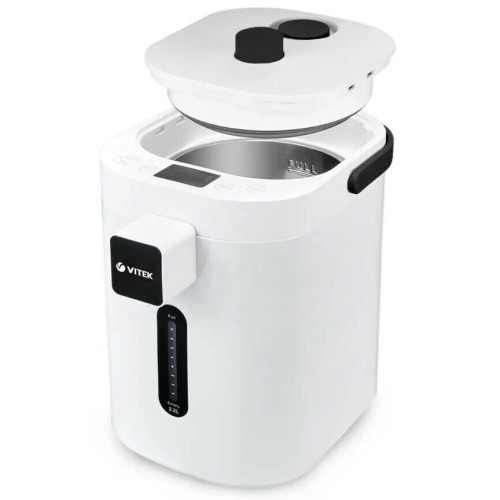 Термопот VT-7114 объёмом 3,2л с корпусом из белоснежного высококачественного пластика привлекает внимание своим дизайном и функциональными свойствами. В данной модели предусмотрены 2 режима налива воды: подача электропомпой и нажатием чашкой на клапан. Благодаря электронному контролю температуры нагрева и остывания воды с отображением на LCD дисплее Вы легко и с идеальной точностью добьетесь нужной температуры воды. Гарантировать отличные качества любимых горячих или теплых напитков позволит возможность выбора температуры (от 40 до 90 °C с шагом в 5°C градусов + режим кипячения 100°C). Также термопот обеспечен функцией повторного кипячения и поддержания температуры воды. Наличие большой шкалы уровня воды с подсветкой позволяет с наибольшей точностью определить количество жидкости. Мощность прибора - 680 Вт. Модель VT-7114 оснащена удобной ручкой, с помощью которой термопот легко переносить. Купите термопот VT-7114 для семейных чаепитий.