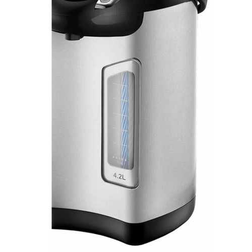 Термопот VITEK VT-1195 позволит не только вскипятить большой объем воды (до 4,2 л), но и сохранить ее в горячем виде в течение дня, благодаря функции поддержания температуры. Максимальная мощность устройства — 730 Вт. Следить за уровнем воды, на корпусе прибора, изготовленного из высококачественной нержавеющей стали, позволяет удобная широкая шкала. В термопоте предусмотрено три способа подачи воды: чтобы налить ее в емкость, можно воспользоваться специальным насосом (механической помпой), электрической помпой или просто нажать чашкой на клапан. Хотите еще раз нагреть воду? Нет ничего проще: в термопоте имеется функция повторного кипячения. Благодаря надежной системе защиты перегрев прибора исключен.