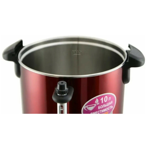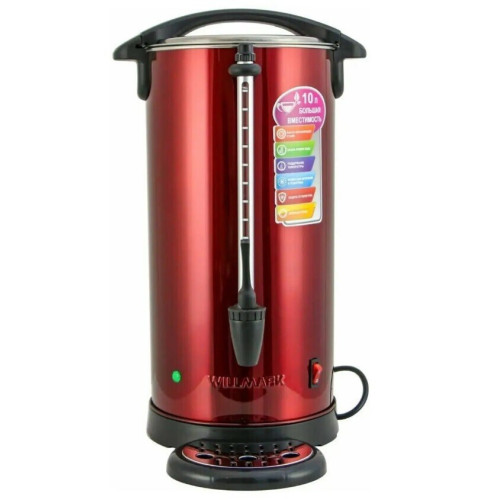 Профессиональный бойлер для горячих напитков WILLMARK WWB-1021S с двухслойным баком из нержавеющей стали используется для приготовления горячих напитков в ресторанах, кафе, офисах и на различных мероприятиях. Доводит воду до кипения и поддерживает температуру. В конструкции кипятильников применяется закрытый, не контактирующий с водой ТЭН, оптимизирующий работу прибора и препятствующий возникновению накипи. • Скрытый нагревательный элемент • Функция поддержания температуры ( +82 - +92) • Защита от перегрева • Пластиковый кран • Указатель уровня воды • Переключатель вкл/выкл • Противокапельный поддон Бак: Двухслойный , из нержавеющей стали; Защита от перегрева: есть; Индикатор работы: есть, световой; Мощность (Вт): 1500; Нагревательный элемент: скрытый; Напряжение (В): 230; Объем (л): 10; Переключатель: вкл/выкл; Противокапельный поддон: есть; Уровень: воды; Функция поддержания температуры: есть; Цвет: красный; Частота (Гц): 50;