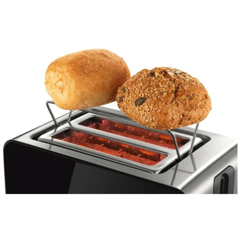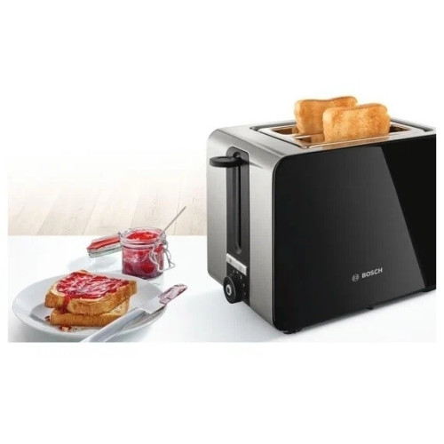 Тостер Bosch TAT 7203 Все должно быть идеально вашим утром: приятный дизайн, удобство в обращении и отличный хрустящий ломтик тоста. Интегрированная складывающаяся подставка для подогрева выпечки Настройки разморозки и разогрева: размораживает тост и делает его хрустящим Автоматическое центрирование тостов Автоматическое отключение: выключает тостер, когда хлеб застревает Сделайте Ваш завтрак особенным. Используйте этот режим для подогрева тостов или булочек. Пусть Ваш завтрак будет особенным. Ощущайте, что вы на выходных всю неделю. Большинству людей нравится действительно хороший завтрак на выходных. Как бы это было, если бы вы могли испытать короткий уик-энд в течение недели? Режим разморозки и разогрева не только размораживает ваш хлеб, но и делает его хрустящим — как будто он только что из пекарни. Идеальный тост ждет вас Иногда у вас в голове появляется эта картинка — абсолютно равномерно поджаренный кусочек золотисто-коричневого хлеба. Но результат не такой, как вам хотелось бы. Если у вас есть тостер с автоматическим центрированием, он дает вам именно тот тост, который вы хотите. Хлеб автоматически центрируется и обеспечивает равномерное поджаривание. Не беспокойтесь — просто наслаждайтесь завтраком. Каждому знакома эта ситуация. Завтрак может быть сумбурным, и вы можете забыть выключить тостер. С автоматическим отключением вы в безопасности, так как он отключается через определенный промежуток времени. Все, о чем вам нужно беспокоиться, — это о начинке для вашего тоста.