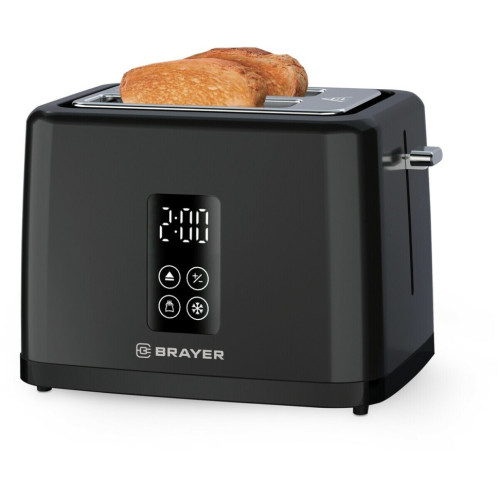 3 режима работы Выбор одного из 3-х режимов работы происходит с помощью сенсорных кнопок, расположенных на корпусе устройства. Режим «Разморозка» позволяет поджарить замороженный хлеб, режим «Подогрев» - подогреть остывшие тосты Автоцентрирование тостов Благодаря автоцентрирования тосты располагаются посередине между нагревателями и обжариваются равномерно с обеих сторон Остановка приготовления тостов Если возникла необходимость выключения тостера или вы хотите остановить процесс поджаривания тостов, нажмите на кнопку остановки приготовления Съёмный поддон для крошек В нижней части тостера расположен съёмный поддон для сбора крошек, который легко извлекается при необходимости очистки