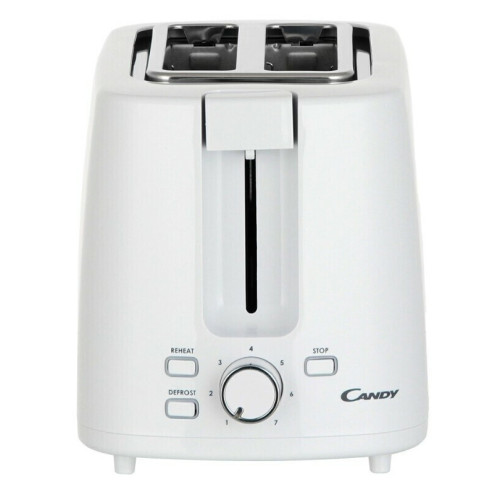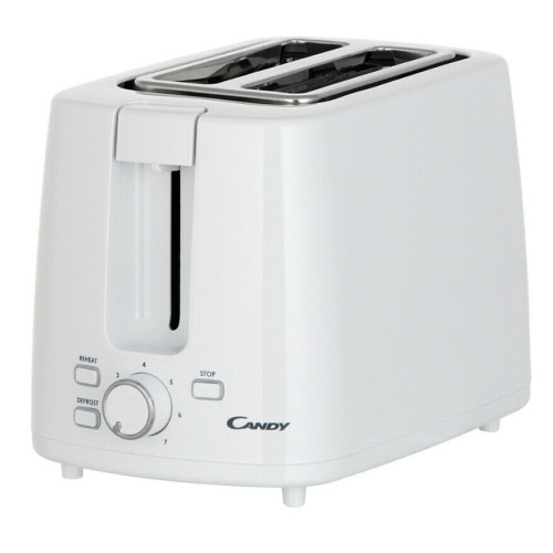 Тостер Candy CT - 251 выполнен из пластика, окрашен в классический белый цвет. На корпусе прибора расположены кнопки управления, индикаторы и регулятор степени прожарки (тостер поддерживает семь степеней). Прибор оснащен двумя отсеками размером 135 x 35 мм для приготовления тостов. Эта модель обладает дополнительными функциями размораживания и подогрева. Предусмотрен съемный поддон для крошек, расположенный в нижней части устройства. Тостер оснащен прорезиненными ножками, которые придают ему устойчивость во время работы. Мощность прибора составляет 930 Вт, он подключается к сети при помощи шнура длиной 0,7 м, который удобно хранить в специальном отсеке. Функция отключения при застрявшем тосте убережет устройство от случайных поломок. Габариты тостера составляют 18,8x27,3x17,3 см, вес — 1,28 кг.