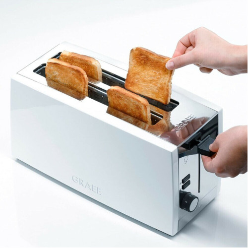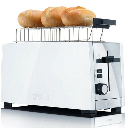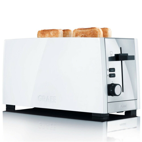 Тостер GRAEF TO 101 предназначен для обжаривания ломтиков тостового хлеба. Особенности Тостер двумя с длинными слотами Корпус из нержавеющей стали и алюминия Длинный кабель 6 степеней поджаривания Центрирование ломтиков Держатель для булочек Защитное отключение при застревании ломтика Кнопка остановки Функция разморозки Кнопка Стоп Лоток для крошек 2 слота 260 x 30 x 130 мм 4 тоста 110 мм