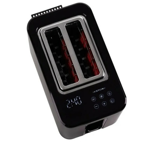 Тостер имее сенсорное управление на дисплее с внутренней подсветкой кнопок при включении, а так же LED таймер с обратным отсчетом. 7 настраиваемых степеней обжарки ,режимы разморозки и подогрева ,повторная поджарка, пользовательские настройки.