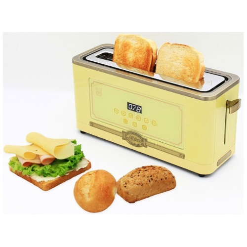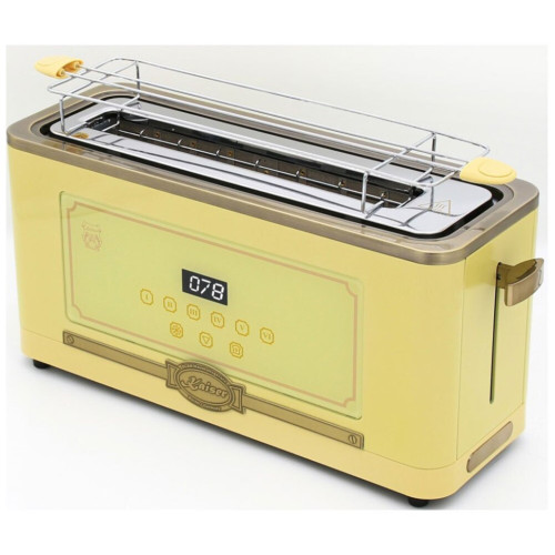 Тостер Kaiser T 4000 ElfEm — это элегантное и функциональное устройство, которое станет незаменимым помощником на вашей кухне. Тостер выполнен в стильном ретро-дизайне, который подчеркивается цветом слоновой кости корпуса и LED-подсветкой. Особенности: Прибор оснащен сенсорным управлением и дисплеем, что делает его использование максимально комфортным и простым. Вы всегда сможете контролировать процесс приготовления, благодаря обратному отсчету на таймере. Особенностью является автоматическое центрирование, которое обеспечивает равномерное поджаривание тостов. Автоматическое извлечение тостов после окончания приготовления позволяет избежать ожогов и облегчает использование устройства. Тостер имеет нескользящие ножки, которые обеспечивают его стабильность на любой поверхности. Характеристики: Коллекция: Retro Мощность: 850 Вт Управление: сенсорное Количество отделений для тостов: 2 Количество степеней поджаривания тостов: 6 Функция подогрева: есть Функция размораживания: есть Кнопка «Отмена»: есть Материал корпуса: металл Решетка для подогрева булочек: есть Автоматическое центрирование тостов: есть Автоматическое извлечение тостов: есть Дисплей: есть Обратный отсчет времени поджаривания: есть Подсветка элементов управления: есть (LED) Поддон для сбора крошек: есть Длина шнура электропитания: 0.7 м Отсек для компактного хранения шнура: есть Размеры (ВхШхГ): 18.5х38.5х13.1 см Вес: 1.9 кг Цвет: слоновая кость Комплектация: Тостер Инструкция по эксплуатации Гарантийный талон
