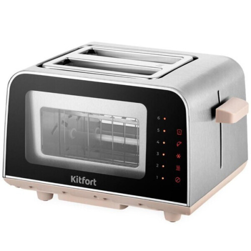 Электрический тостер Kitfort создан для тех, кто любит полакомиться ароматным и хрустящим горячим поджаренным хлебом . Особый вкус и цвет корочки тостов получаются такими благодаря карамелизации сахара, содержащегося в муке, при инфракрасном нагреве в процессе приготовления. Благодаря стеклянным стенкам с двух сторон тостера вы можете наблюдать за процессом приготовления. Тостер оснащен сенсорной панелью управления и может работать в нескольких режимах. Режим «Подогрев» служит для подогрева уже готовых тостов, если они остыли. Режим «Разморозка» позволяет приготовить тосты из замороженного хлеба. Режим «Бейгл» позволяет поджарить внутреннюю часть разрезанного пополам мучного изделия, в то же время внешняя поверхность не пригорит. Загруженные тосты автоматически центрируются, чтобы их обжарка с двух сторон была равномерной независимо от толщины куска. По окончании приготовления тостер автоматически отключается, а тосты поднимаются вверх, чтобы их было удобнее извлечь. Механизм экстра-подъема позволяет приподнять выше тосты небольшого размера для их удобного извлечения. Вы можете приготовить 1 или 2 тоста одновременно. Съемный поддон для крошек позволяет легко и удобно очистить тостер от хлебных крошек. Тостер предназначен для приготовления тостов в домашних условиях и может применяться в квартирах, загородных домах, клиентами в гостиничных номерах, бытовых помещениях магазинов, офисов и т.п. для некоммерческой эксплуатации.