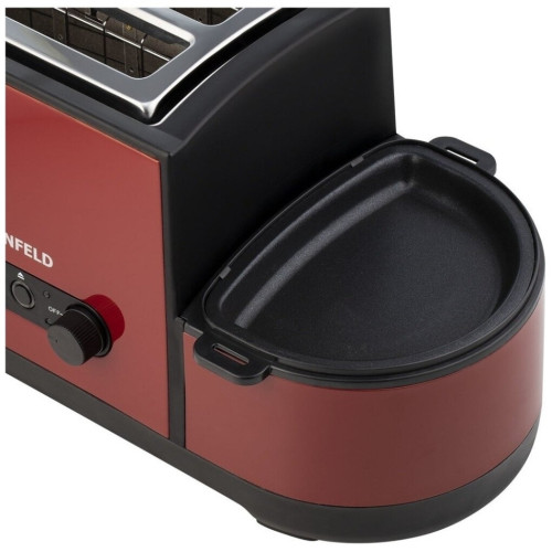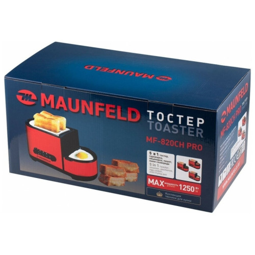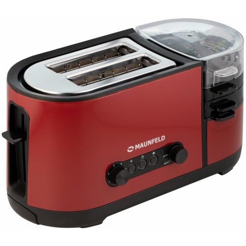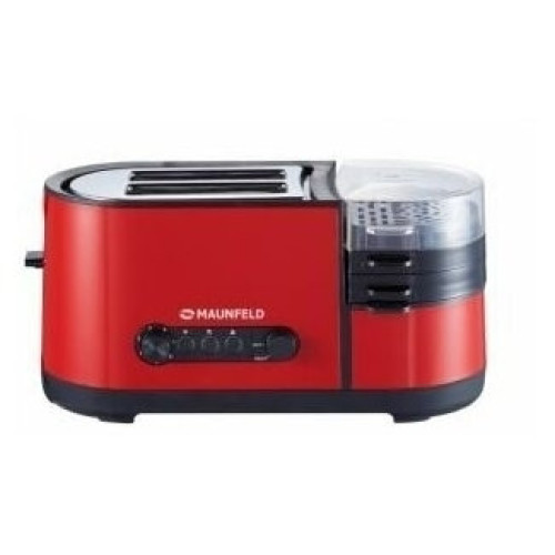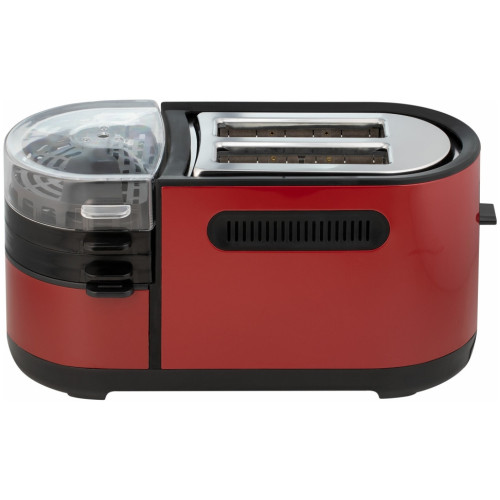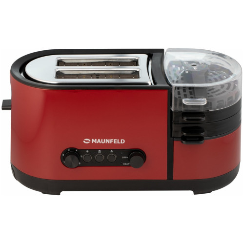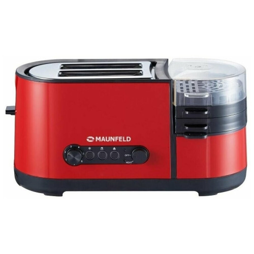 Основные характеристики Мощность: 1250 Вт Тип загрузки: вертикальная Количество отделений: 2 Количество тостов: 2 Управление Тип управления: электромеханическое Переключатели: кнопочные, поворотные Регулировка степени поджаривания: да Подсветка панели управления: да Режимы работы Количество степеней обжаривания: 7 Количество режимов работы: 5 Режимы работы: разогрев, разморозка, приготовление яичницы, варка яиц, варка на пару Функция размораживания: да Функция подогрева: да Автоматическое центрирование тостов: да Индикация Индикация включения: да Индикатор нагрева: да Дополнительные характеристики Кнопка «Стоп»: да Корпус Цвет: красный Материал корпуса: нержавеющая сталь Сетевой кабель: 0.75 м Комплектация Поддон для крошек: в комплекте Дополнительная комплектация: стимер, мерный стакан, лопатка, крышка, сковорода, держатель для яиц, поддон для готовки на пару Инструкция: да Размеры и вес Ширина: 39 см Высота: 21.5 см Глубина: 15 см Вес: 2.19 кг