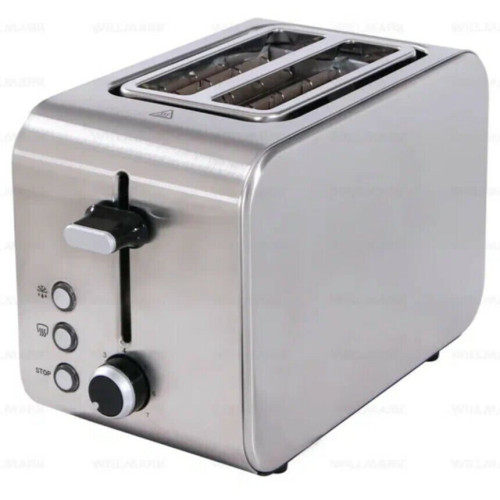 Тостер WILLMARK WTS-9817S в серебристом корпусе, выполненном из хромированного металла, порадует любителей тостов обширным функционалом, качественной сборкой и привлекательным внешним видом. Модель получила стандартную конструкцию, предусматривающую два отделения для равномерного обжаривания двух кусочков хлеба одновременно. Оптимальная мощность прибора, равная 850 Вт, обеспечит быстрое приготовление тостов. В зависимости от ваших предпочтений к степени обжаривания предусмотрено семь основных режимов работы устройства, подобрать наиболее оптимальный можно при помощи поворотного регулятора. Данная модель предусматривает функцию размораживания и подогрева, а также кнопку отмены приготовления. Благодаря автоматическому центрированию тостов они будут равномерно обжариваться со всех сторон. В специальный поддон будут собираться все крошки, чтобы сам прибор и поверхность под ним оставались чистыми.