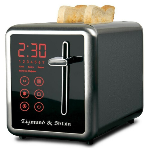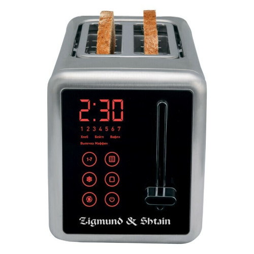 Тостер Zigmund & Shtain умеет не только обжаривать два кусочка хлеба одновременно, но и разогревать булочки, размораживать замороженные продукты перед приготовлением. Крошки от поджариваемого хлеба собираются в аккуратном нижнем поддоне, а приготовленные тосты автоматически выбрасываются из прибора. Доступно семь степеней обжаривания тостов.