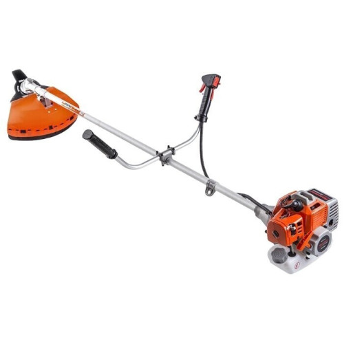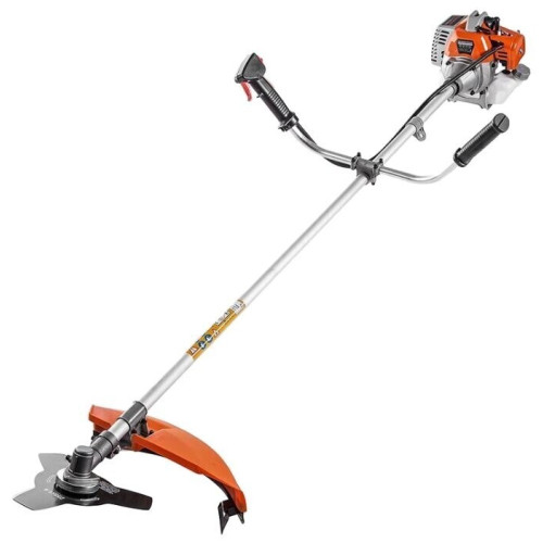 тип триммера: переносной мощность ДВС 1.6 л.с. двухтактный двигатель емкость топливного бака 0.75 л ширина скашивания 43 см режущий элемент триммера: леска и нож, леска 2.40 мм конструкция штанги: прямая форма рукояти: Т-образная (велосипедная) плечевой ремень наличие колес: нет вес 6.9 кг