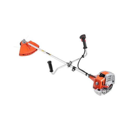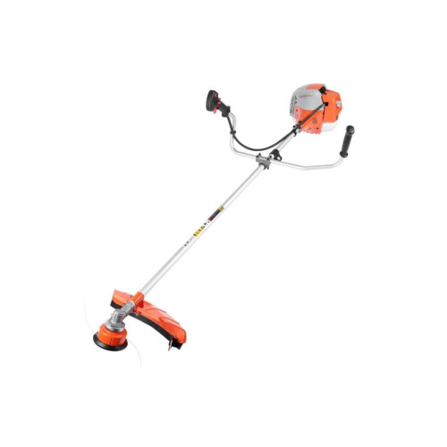 Hammer Flex MTK43B — мотокоса мощностью 1,7 л.с. для стрижки газона, кустов, густого бурьяна. За один проход инструмент обрабатывает отрезок шириной 43 cм. Модель работает и с леской, и с ножом. * С помощью лески подравняет газон, пострижет траву вокруг садовых дорожек, деревьев, у забора и стен дома. * С помощью трехлопастного ножа скосит густой бурьян и небольшие кустарники. Комплектация * кожух; * канистра для бензосмеси; * шестигранные ключи; * ключ для регулировки и замены свечи; * ремень ранцевого типа; * нож; * катушка с леской.