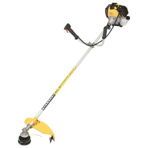 тип триммера: переносной мощность ДВС 2 л.с. двухтактный двигатель емкость топливного бака 1.2 л ширина скашивания 44 см режущий элемент триммера: леска и нож, леска 2.40 мм конструкция штанги: прямая форма рукояти: Т-образная (велосипедная) плечевой ремень наличие колес: нет вес 8 кг