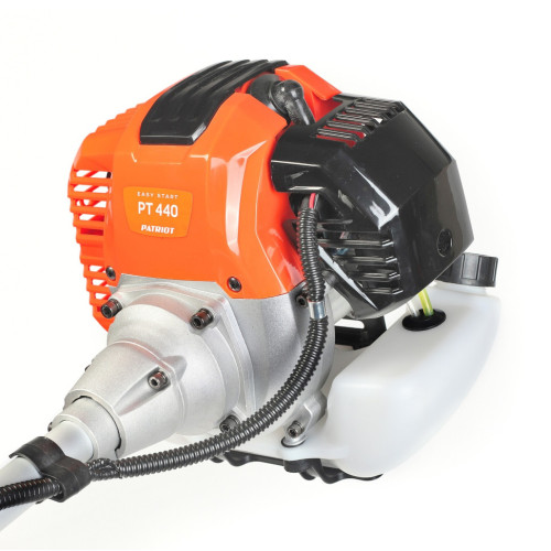 Мощный универсальный триммер РТ 440 с регулируемой велосипедной рукояткой предназначен для скашивания густой травы на неровных, больших площадях. Современный дизайн, усиленный корпус двигателя, жесткий трансмиссионный вал. При замене лески на режущий нож применяется для скашивания сухостоя, жестких сорняков и небольших кустарников. Обладает высокой производительностью и отличным тяговым усилием. Передовая система антивибрации, сбалансированная конструкция обеспечат удобство при эксплуатации. Все элементы управления встроены в эргономичную рукоятку. Праймер обеспечит легкий старт. Система Easy Start позволяет осуществить плавный легкий запуск без рывков. Легкий доступ к воздушному фильтру и свече зажигания позволяет проводить регулярное техническое обслуживание без необходимости обращения в сервисный центр. Применение запатентованных масел и смазок снижает вредные выбросы в атмосферу. Комплектация: Двигатель в сборе с рукояткой управления; Трансмиссионный узел (вал) в сборе; Рукоятка (левая часть); Ранцевый ремень; Защитный кожух; Триммерная катушка с леской; 3-х лопастной нож; Соединительное звено рукояток; ЗИП комплект для установки триммерного ножа; Канистра для приготовления топливной смеси; Инструкция по эксплуатации; Набор крепежа и инструментов для сборки/обслуживания; Упаковка.