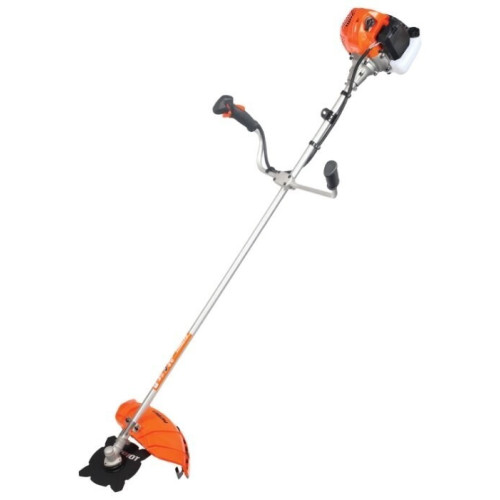 тип триммера: переносной мощность ДВС 3 л.с. двухтактный двигатель емкость топливного бака 1.1 л ширина скашивания 44 см режущий элемент триммера: леска и нож, леска 2 мм конструкция штанги: прямая форма рукояти: Т-образная (велосипедная) плечевой ремень наличие колес: нет вес 8.9 кг