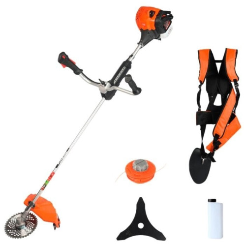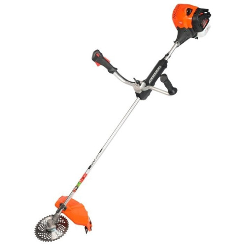 тип триммера: переносной мощность ДВС 3 л.с. емкость топливного бака 1.2 л ширина скашивания 42 см режущий элемент триммера: леска и нож, леска 3 мм конструкция штанги: прямая форма рукояти: Т-образная (велосипедная) плечевой ремень наличие колес: нет вес 10.6 кг